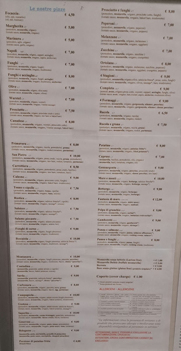 Bar Pizzeria San Pietro Menu